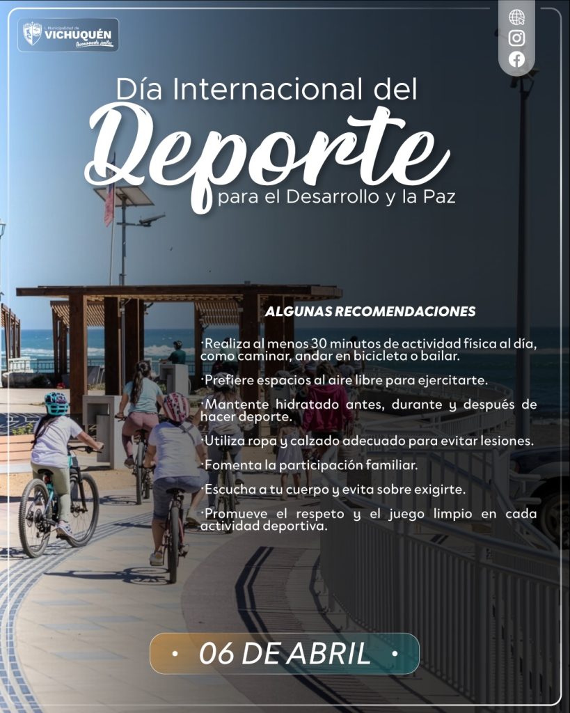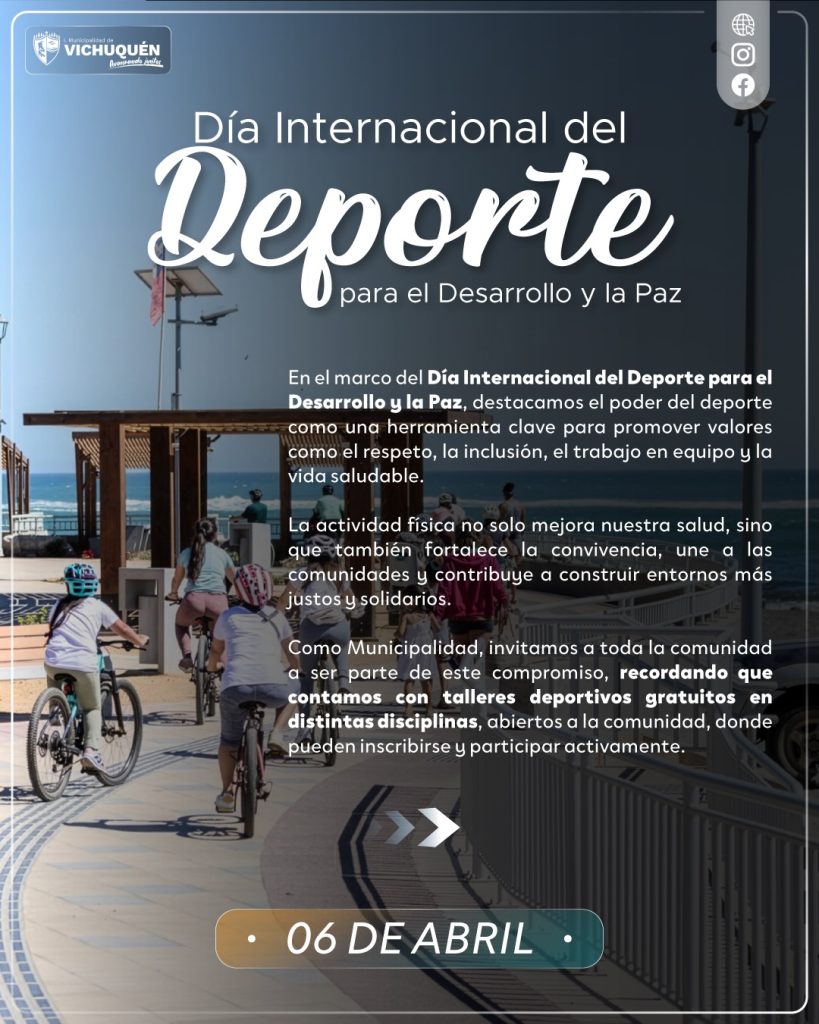 Hoy, 06 de abril, celebramos el Día Internacional del Deporte para el Desarrollo y la Paz. En Vichuquén, sabemos que la actividad física es mucho más que ejercicio: es una herramienta poderosa para construir una comunidad más sana, respetuosa y unida. ![]()