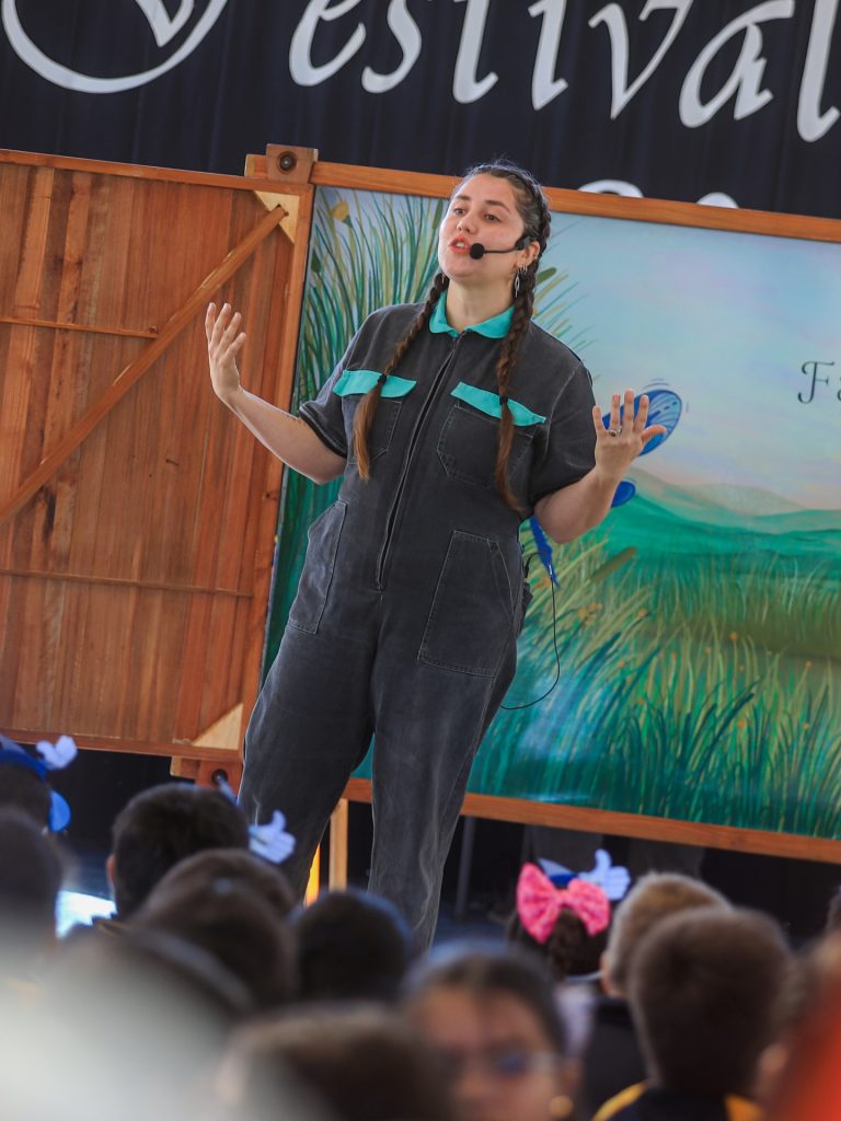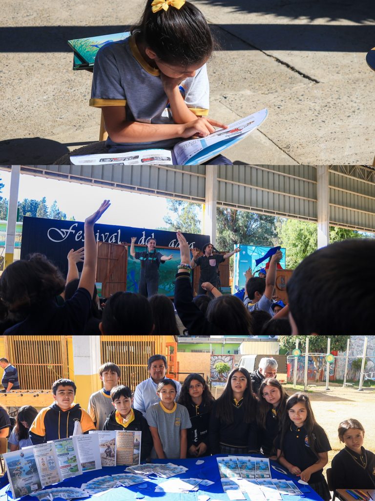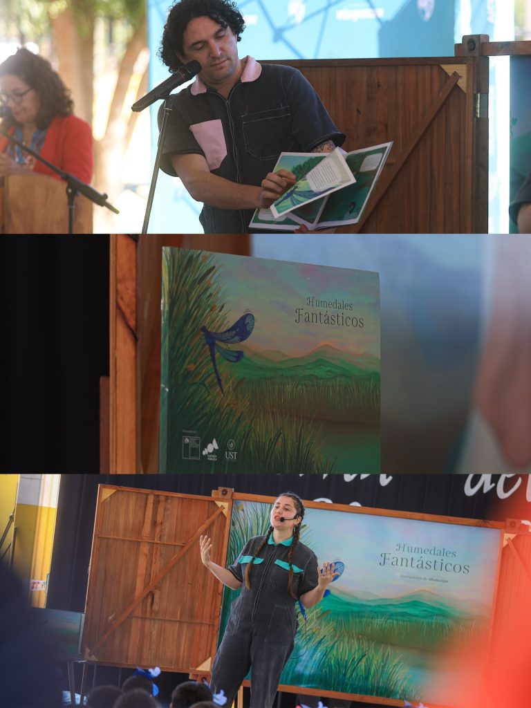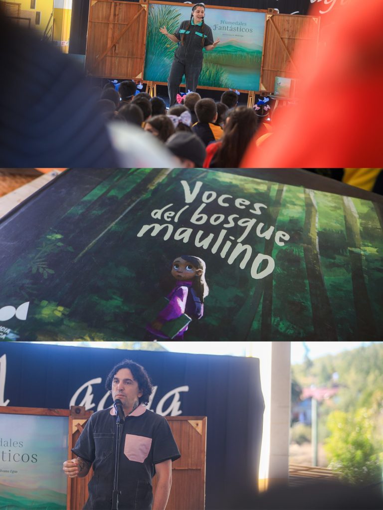 Cuentocalipsis que nos sumergió en el asombroso viaje de “Humedales Fantásticos”, recordándonos que el agua es la gran guardiana de nuestras historias. Los estudiantes de la Escuela Lago Vichuquén nos interpretaron 2 números artísticos junto a sus profesores que reflejaron su profunda conexión con la naturaleza y los Circuitos recreativos y stands informativos donde aprendimos que cada gota cuenta.