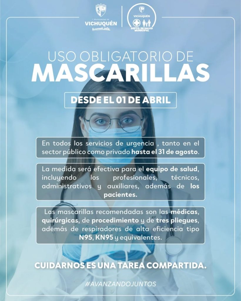 Informamos a la comunidad que, a partir del 1 de abril, será obligatorio el uso de mascarilla en todos los servicios de urgencia, tanto del sector público como privado, hasta el 31 de agosto.
